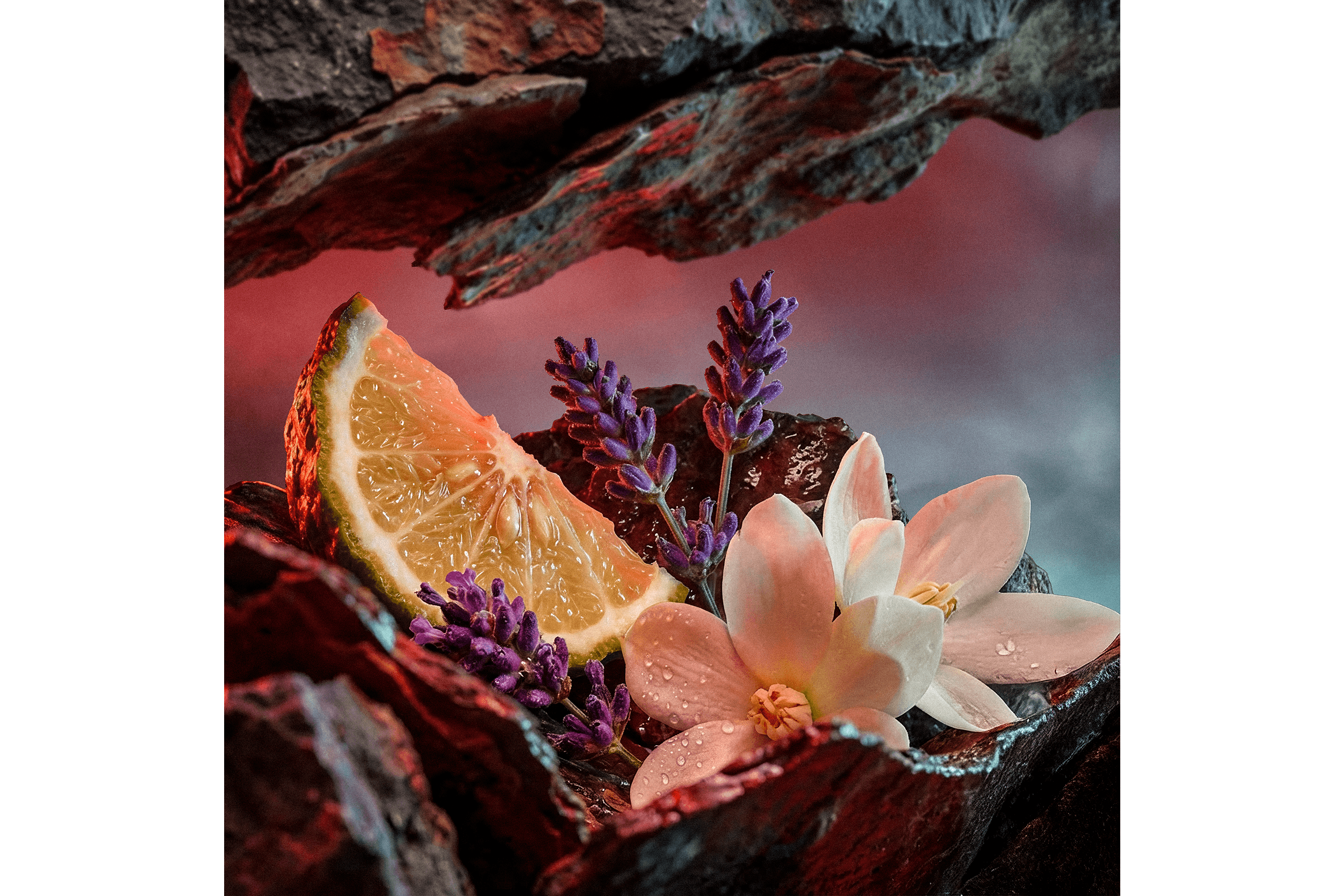 Comme scellés dans la roche, le parfum et ses ingrédients restent en intensité contenue “but not today”, une série fictive imaginée autour d’un parfum créé par Filippo Sorcinelli.